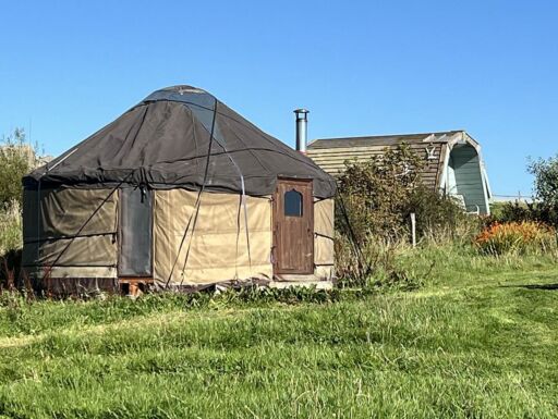 We also have lovely insulated handmade camping pods, Shepherds huts and yurts all with stunning views of the farm and coastline.