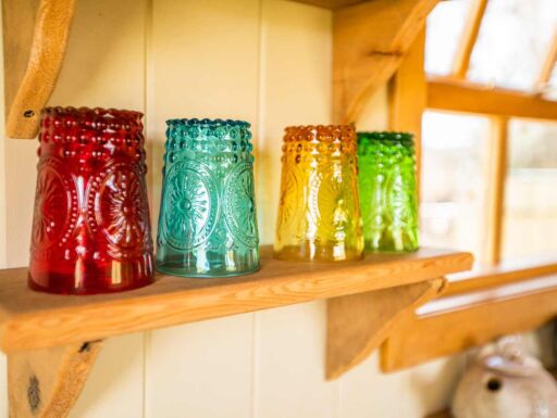 Facilities are just a few steps away in a shared quirky shower and WC block. There are two washing up stations and you have access to a large sit in conservatory area with wood stove and camp kitchen which has fridges, freezer, and many electric kitchen appliances and plugs.