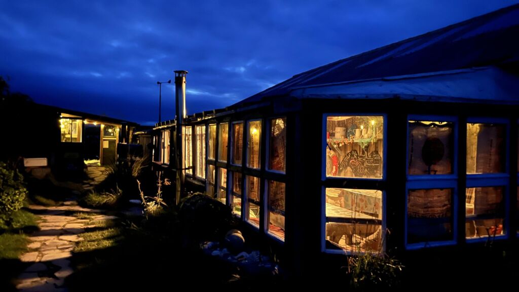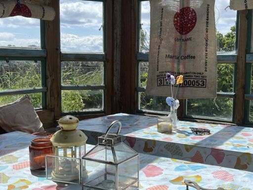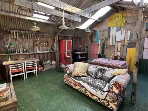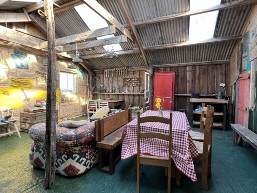 It has a lovely inside outside feel with a wood stove (please light it if you want to or ask for help). There is a book swap area and tables and benches for eating, children’s games, maps, local information etc. Wi-Fi available here.