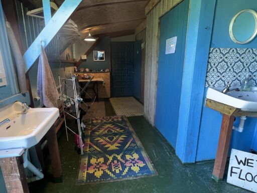 There are 3 brand new push button showers, 3 loos, 2 sinks, washing machine (£5.00 including soap, honesty tin in by washing machine or if no cash let us know and we’ll take a card payments at the end of your stay) and a drying area.