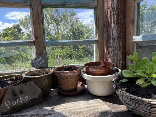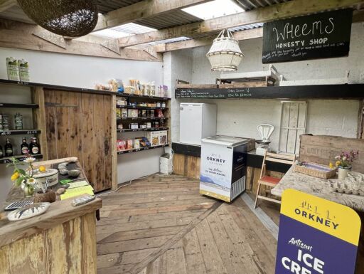We stock a range of local and whole foods – pasta, pulses, tins, snacks, sauces, tea, coffee chocolate etc, fresh eggs, bread (on request) Please put payment in the tins displayed or write a list of items purchased and we can take card payments at the end of your stay. There is a fridge with local cheeses, butter and milk and a freezer for Orkney Icecream. Please help yourself to the herbs that we have planted for you. There is a watering can so if the plants look thirsty please feel free to help us water them!